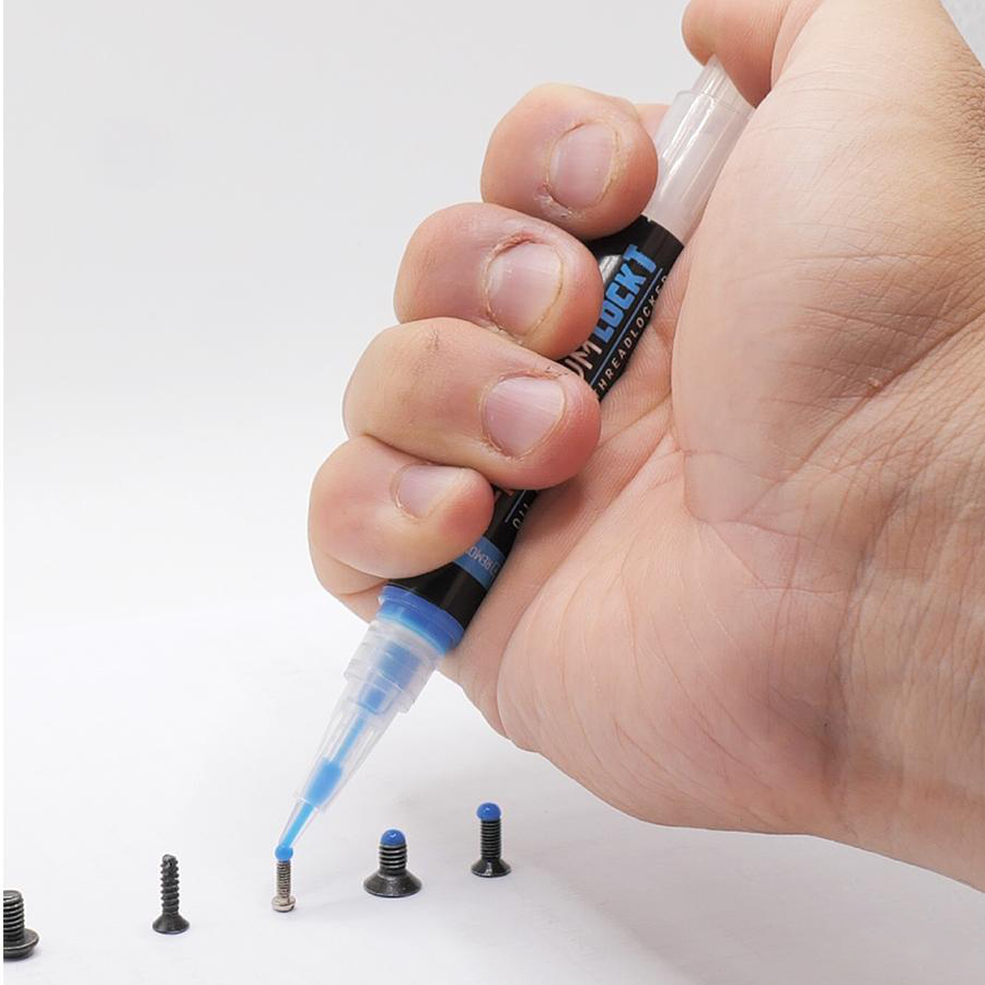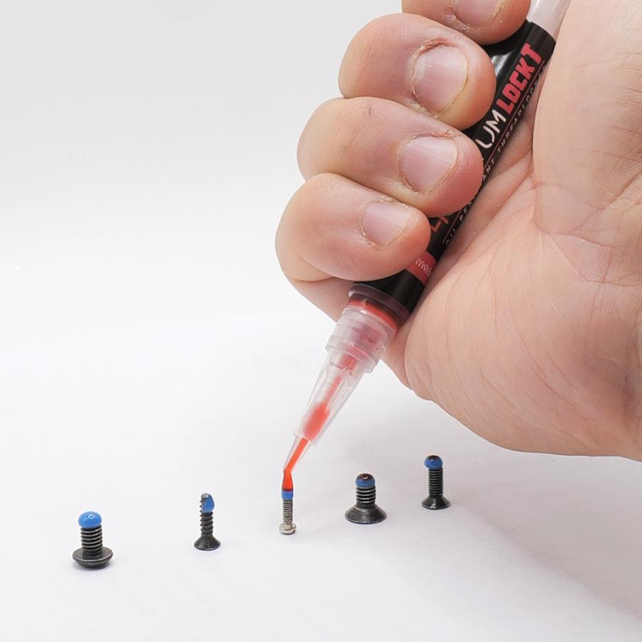 4UANTUM LOCK螺絲固定劑固化時會在螺牙上形成高摩擦力物質,有效的防止螺絲隨著使用而意外鬆動,方便的尾壓筆包裝僅須輕按一下就會擠出對應大多數氣槍螺絲剛好的劑量。