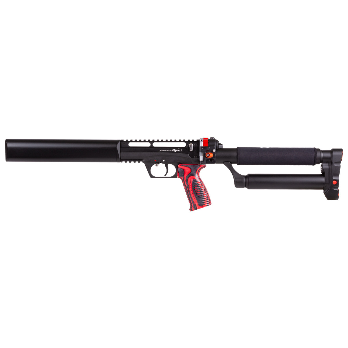 EDgun Leshiy 2 Long 樂事二代 350 mm 槍管版本把便攜性與射擊性能再往前推一小步:在保留 Leshiy 家族可折疊與背包級體積的同時,將槍管延長到 350 mm( 13.75 吋),能讓彈丸在槍管內獲得更完整的推進距離,因而帶來稍高的初速與更穩定的彈道表現。對於追求更佳有效射程、想要在中距離更穩定命中的玩家,350 mm 是一個很實用的折衷選擇——比標準 250 mm 管更穩定、但又比超長款更靈活好帶。