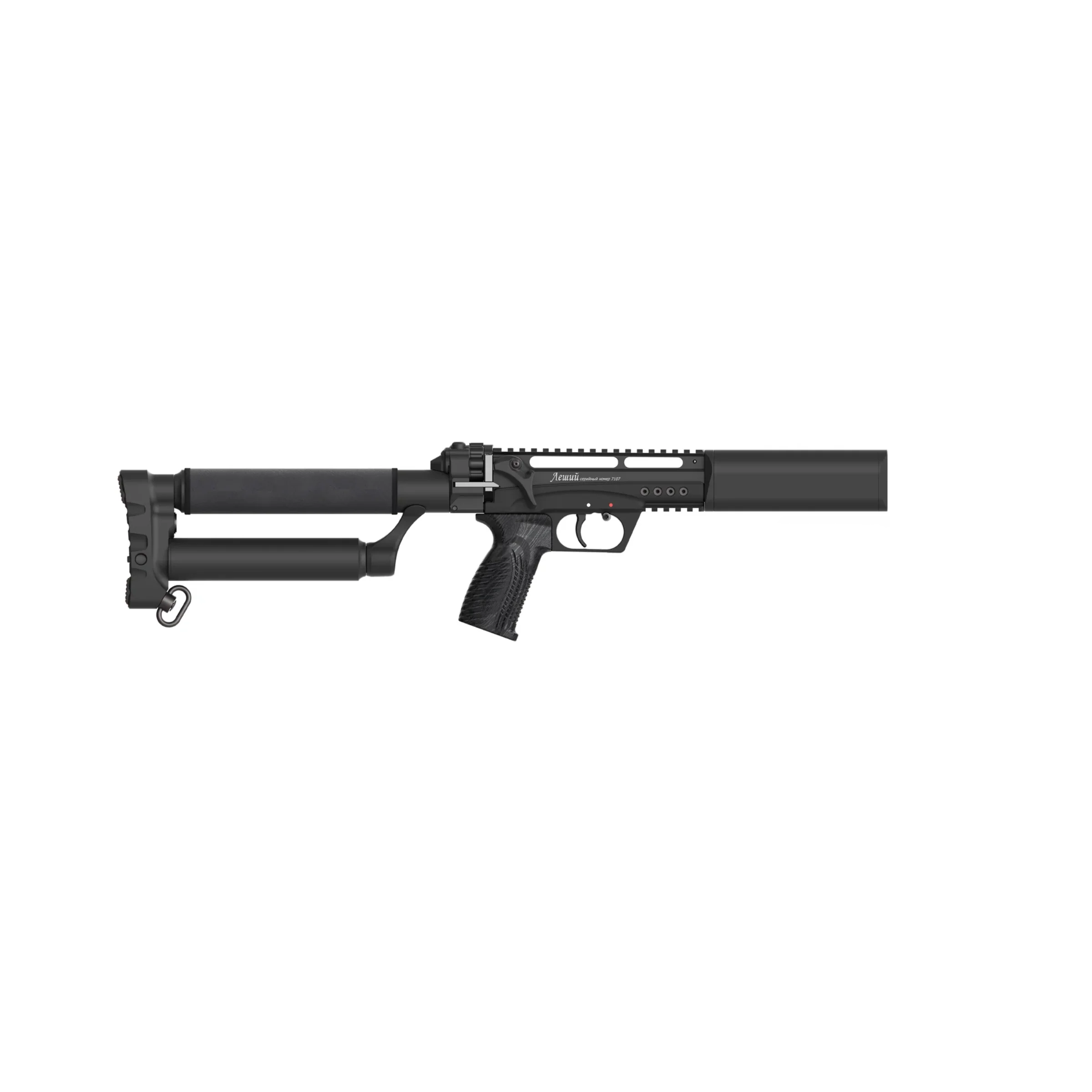 Leshiy 2 延續可摺疊槍托設計,收納體積小,折疊後長度約 13.5 吋(343 mm),展開約 25.5 吋(648 mm);槍管長度 9.85 吋(250 mm),重量約 5 lbs(約 2.27 kg),拉距(length of pull)約 15 吋。左右對稱的手動保險與 QD 快拆掛點設計,使用上相當友善。這些配置讓 Leshiy 2 擁有大槍的能量,同時保有小槍的機動性,非常適合追求便攜且重視調校便利的玩家。