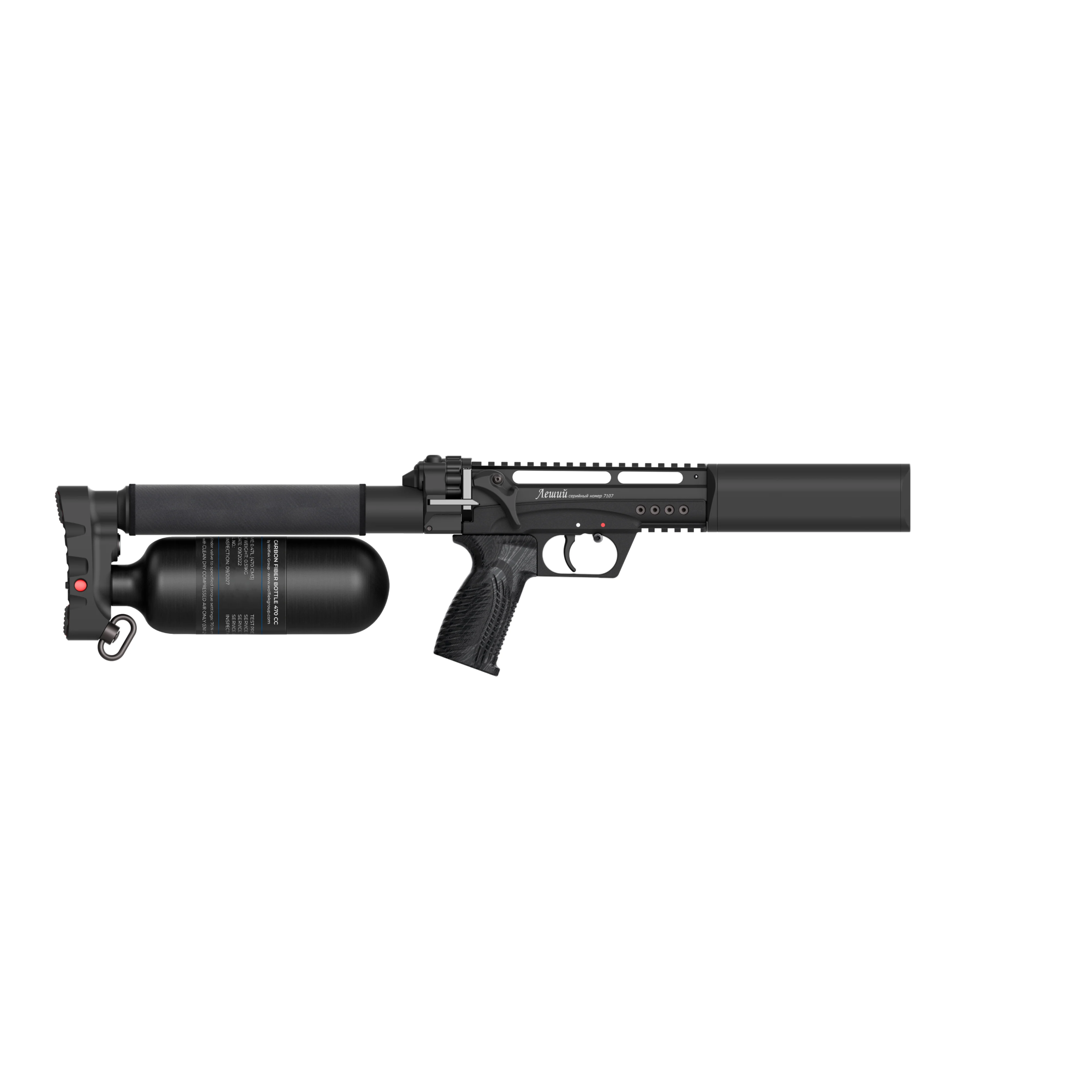 機身還內建 壓力表、空氣過濾器(air stripper)與消音器,採用左右通用的安全保險、止滑槍托與 QD 快拆掛點,整體是把「大槍的能力」壓縮到「背包等級」的一把槍。