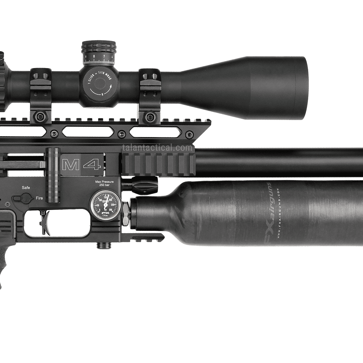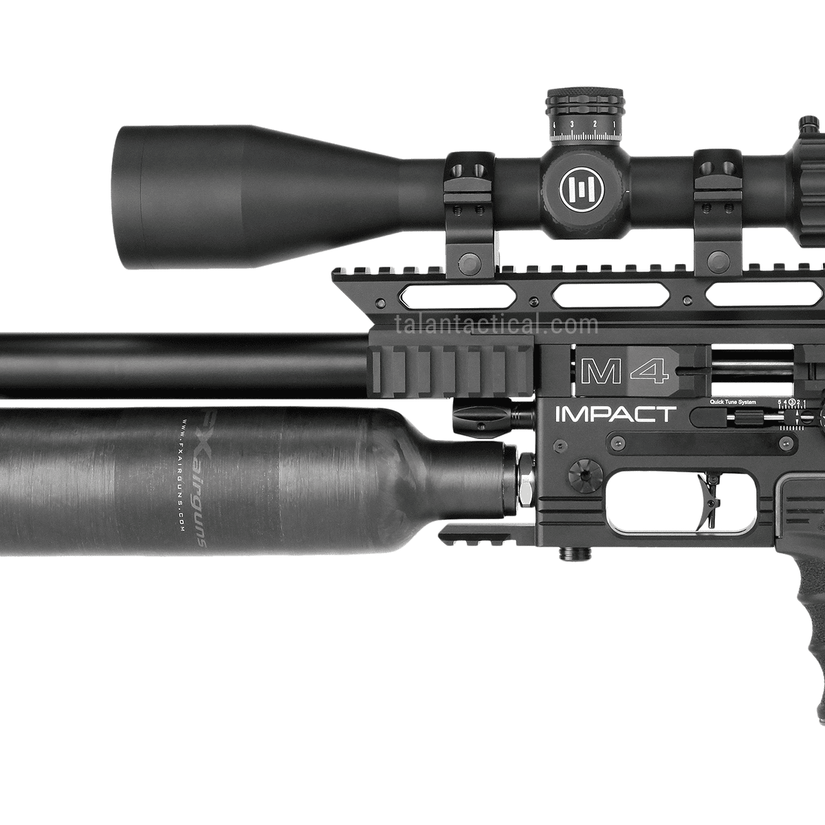 FX Impact M4 Sniper (沖撞 M4) 狙擊版是 FX Impact 系列中針對 長距離精準射擊與高性能需求 所打造的旗艦 PCP(預充氣)氣槍。專門為長距離射擊、重型 Slug、極限穩定度需求所設計的高功率 PCP 系列版本。它延續 Impact 平台原有的模組化、高可調性與超高精準度,並針對遠距離射擊進行全面強化——包含更長的狙擊槍管、高容量碳纖氣瓶配置,提供更穩定的高功率供氣、更穩定的調壓系統、高容量彈匣與延伸式導軌配置,讓射手在 100–200 公尺等級的長距離射擊(依彈種與調校) 依然能保持一致彈著