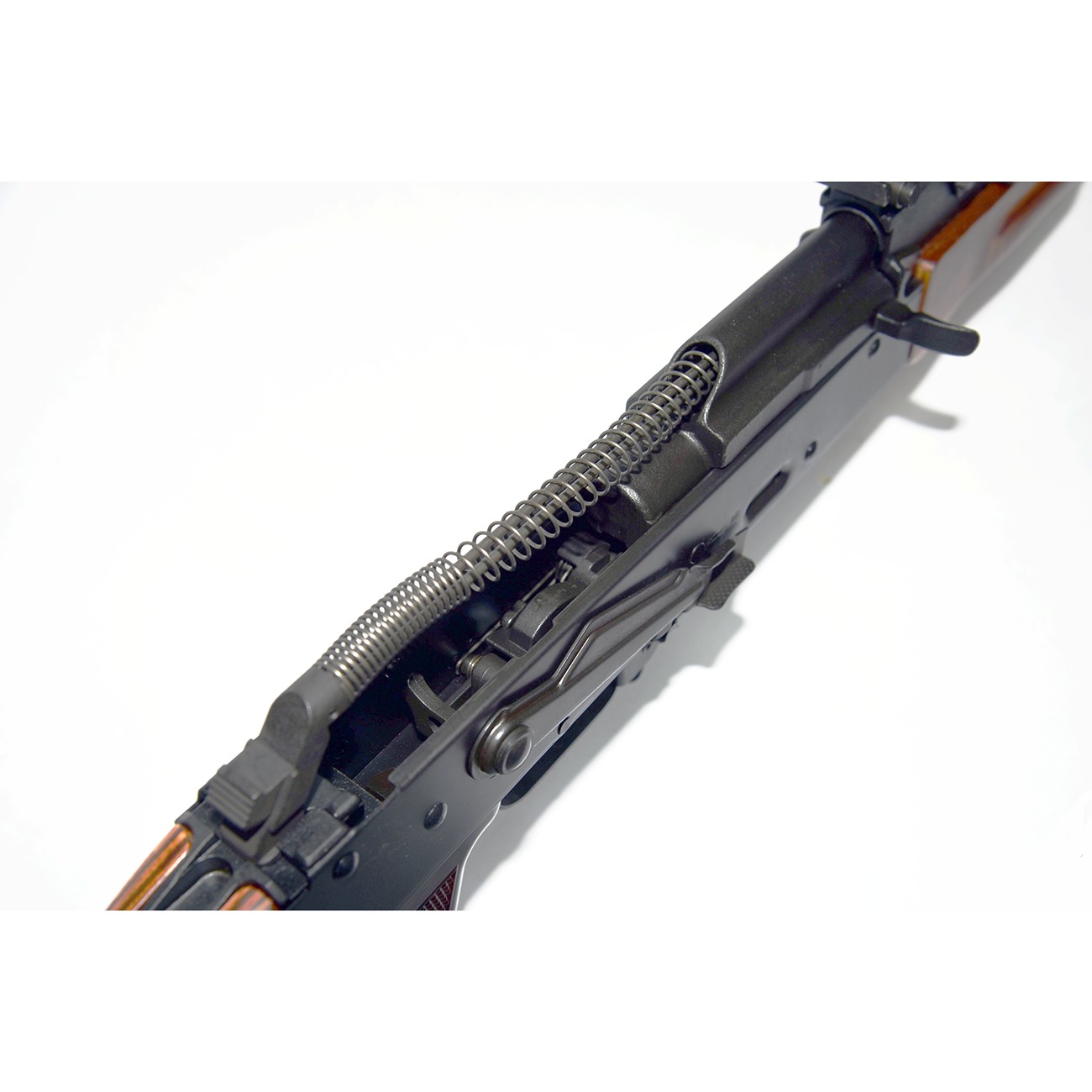 GHK AKM V3 GBB 全行程瓦斯/CO2雙系統反吹後座力氣槍步槍是一款追求高擬真與性能表現的經典AK系列氣槍。全鋼槍機、鋼製槍管與全鋼火控系統,提供厚實手感與長久耐用性。全行程槍機設計,射擊循環速度可達 650 rpm(可替換高循環射速緩衝器),加上21mm超大活塞,帶來更強烈的後座力體感。