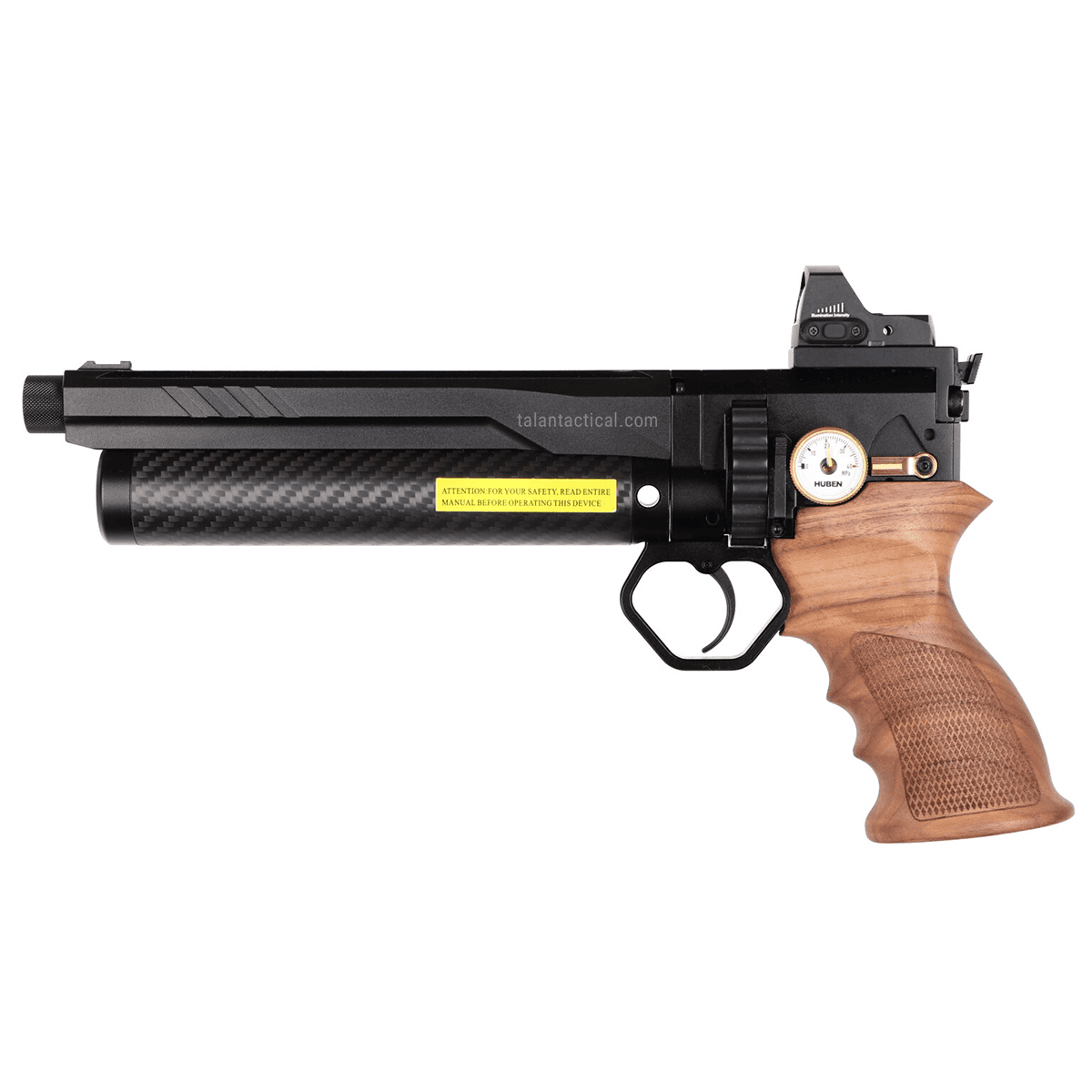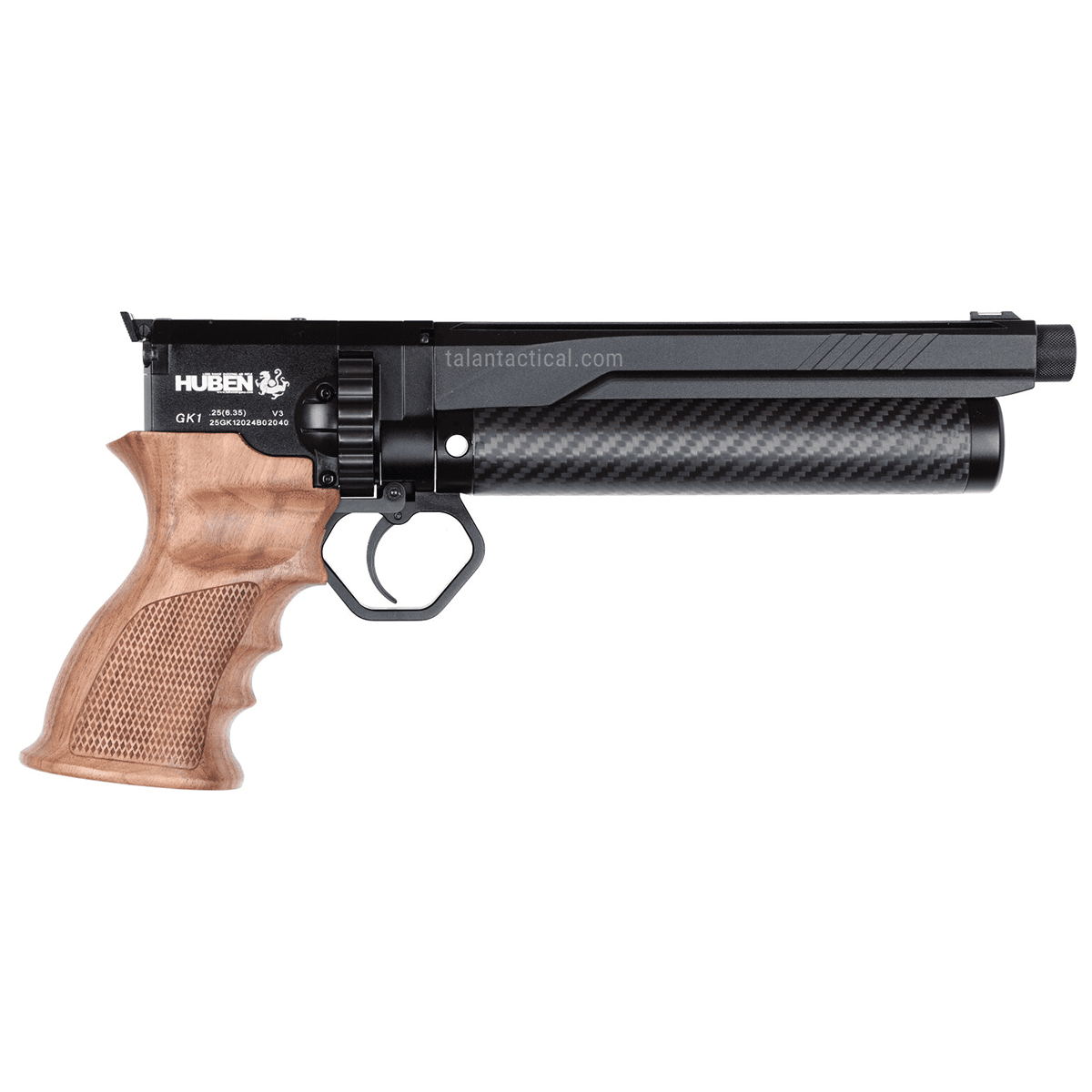 Huben GK1 現已提供 .177、.22 和 .25 口徑,並且定價合理,對於需要遵守能量限制但又不願犧牲性能的用戶來說,是完美的選擇。這款手槍可配備 1/2-20 UNF 轉接頭,讓用戶可以加裝消音器,降低噪音並提升在各種環境中的實用性。