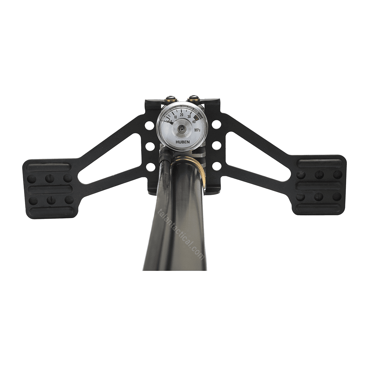 為了提升 PCP 氣槍的氣體儲存壓力,延長每次充氣後的射擊次數並增強使用體驗,HUBEN 推出了一款可在 35 MPa(350 BAR / 5075 psi)壓力下運行的手動壓力泵。該泵具備高效能運作,並擁有輕便易攜的設計,配備可折疊腳踏板和握把,方便攜帶與存儲。