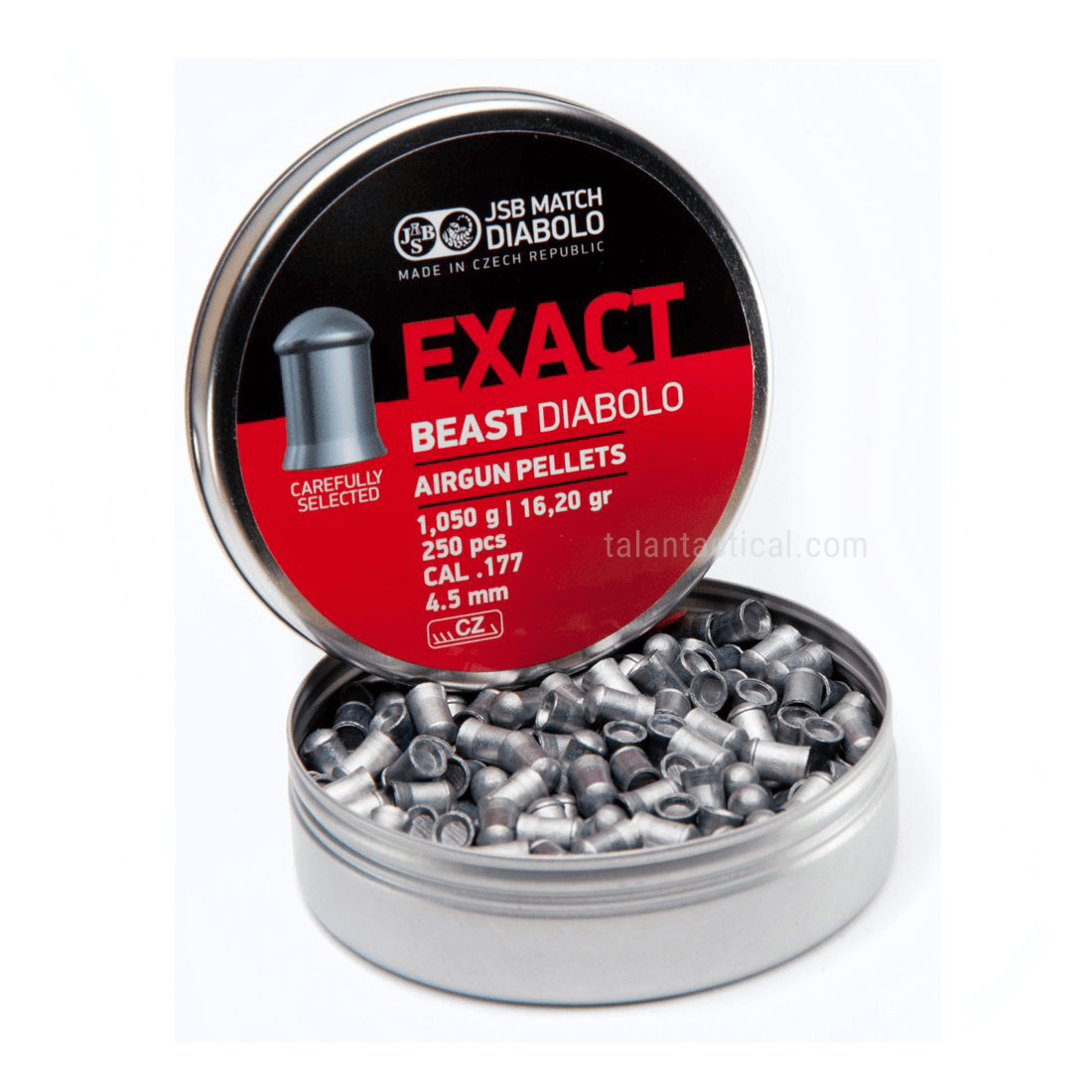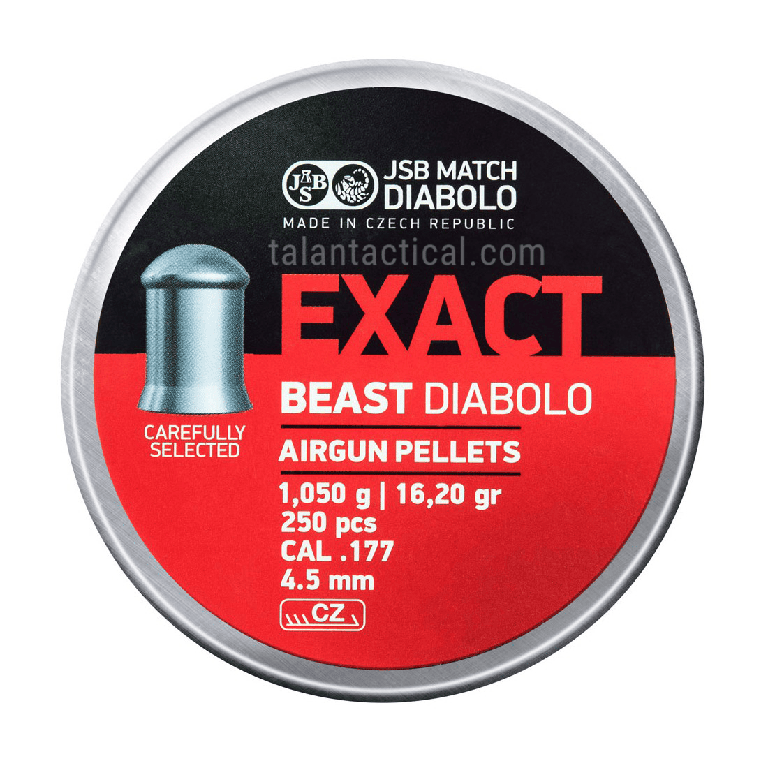 JSB Diabolo Exact Beast 是目前 4.5mm 口徑中最新、也是最重的鉛彈,重量高達 1.050 g。這種重量非常適合搭配高動能氣槍使用,可以帶來玩家追求的強大撞擊力,特別是喜歡 FAC 動能等級的射手一定會愛不釋手。