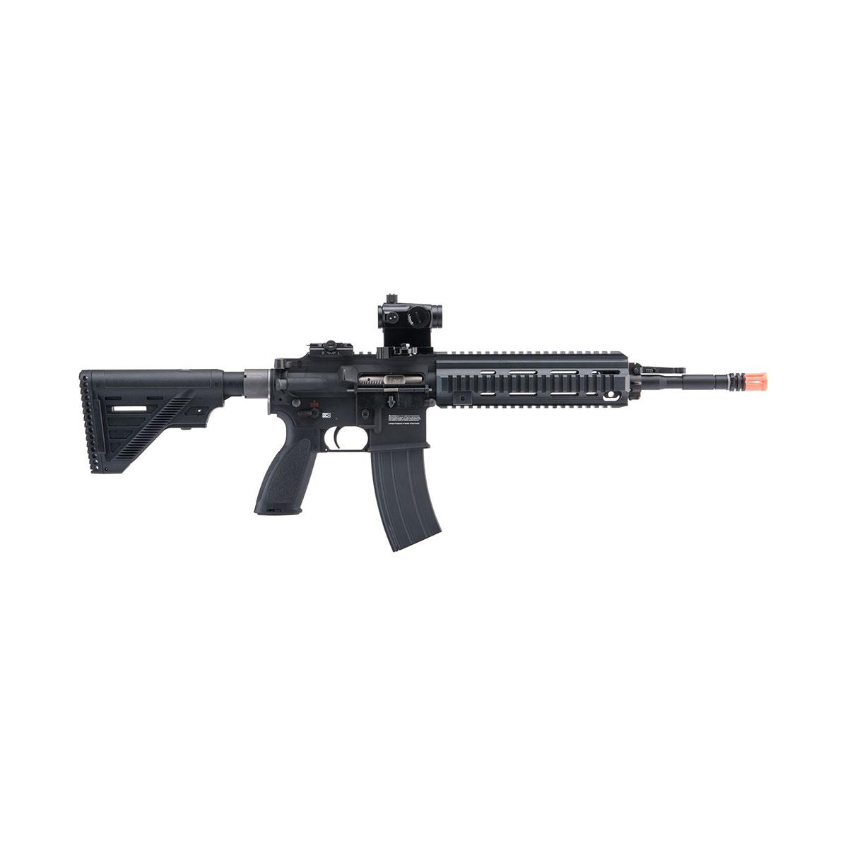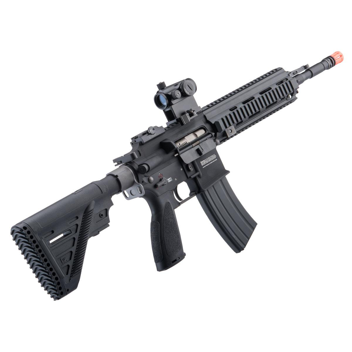KWA HK416 A4 是以 H&K 原廠設計為藍本的全尺寸 GBB 反吹後座力氣槍步槍,通過 H&K 正式授權與雷射雕刻標記還原度高。整把槍採重型金屬結構搭配高強度尼龍增強塑膠部件,耐用且具實戰感。前端採用高精度 CNC 加工的自由浮動四軌護木,並配有全長 Picatinny 頂軌,方便安裝各式光學與戰術配件。