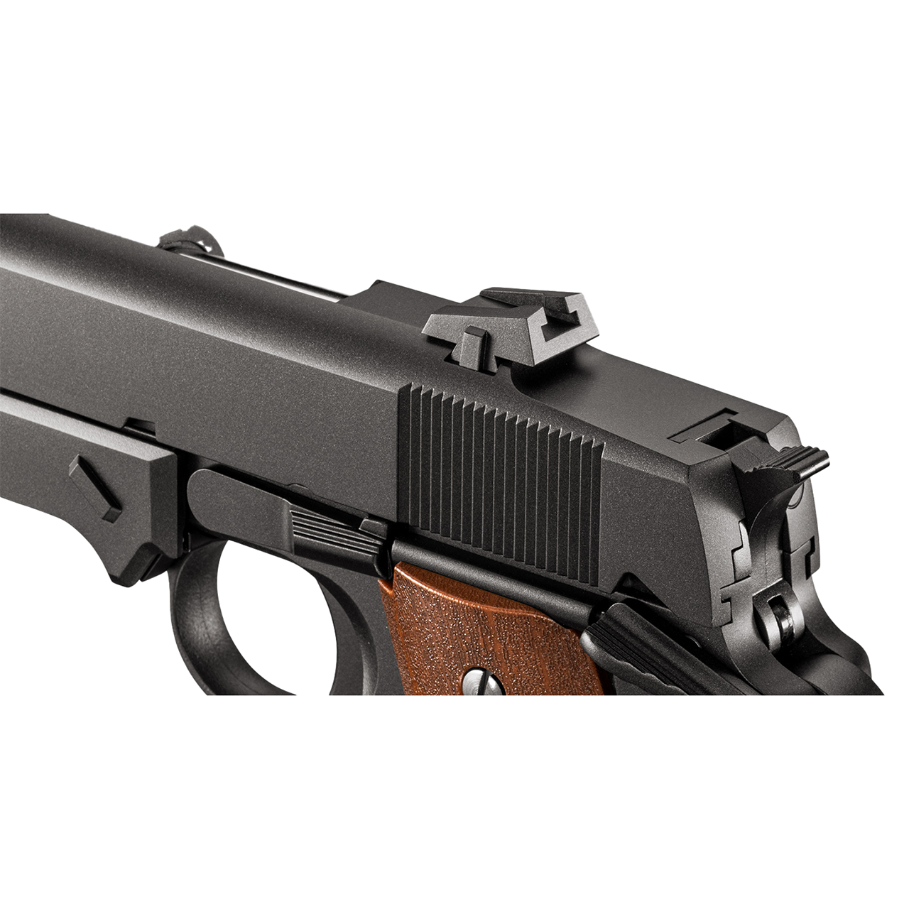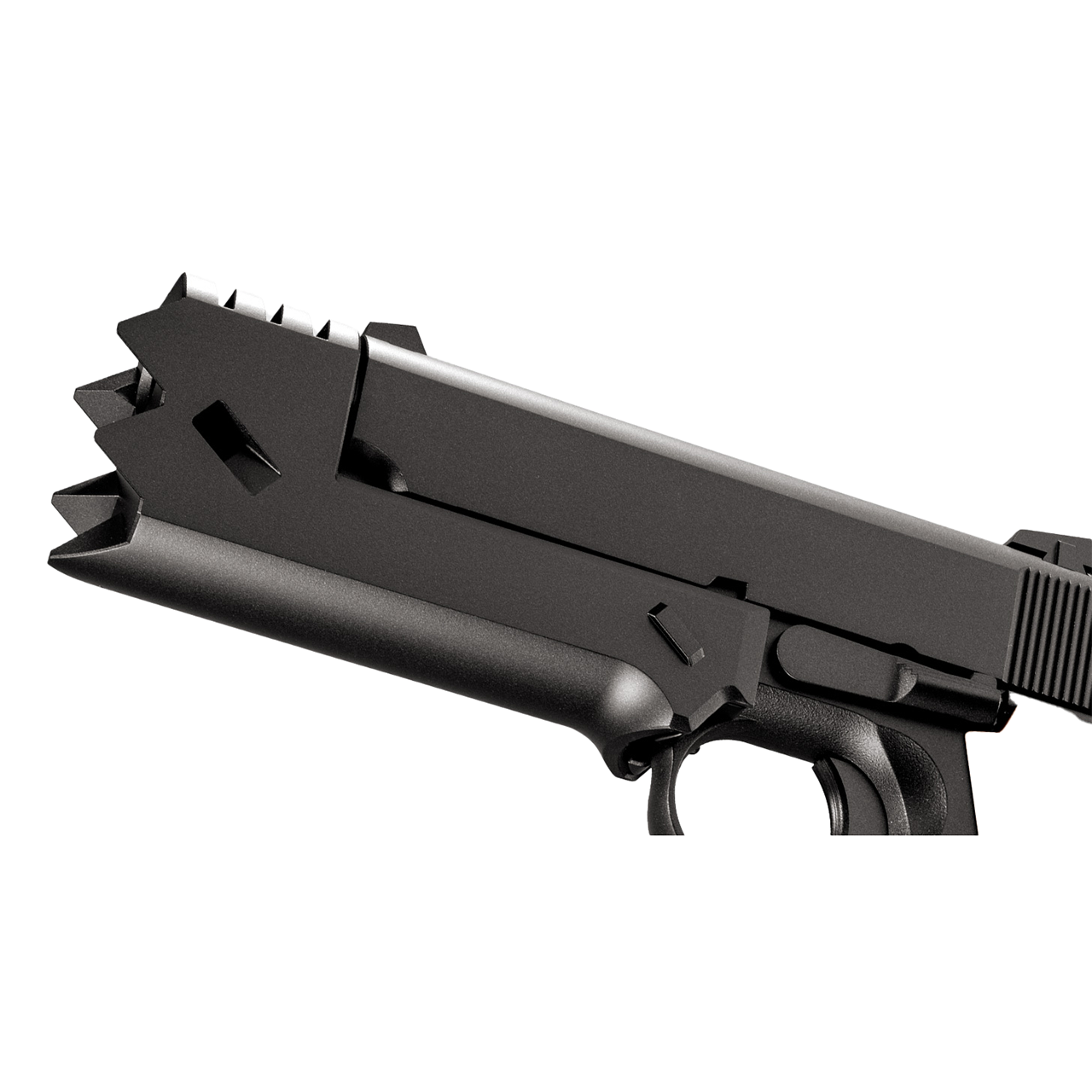 這款手槍採用 0.45 口徑彈藥比例設計,以瓦斯為動力,提供真實後座力射擊體驗。對動畫愛好者及氣槍玩家而言,不僅具收藏價值,也能享受精準、穩定的射擊樂趣。