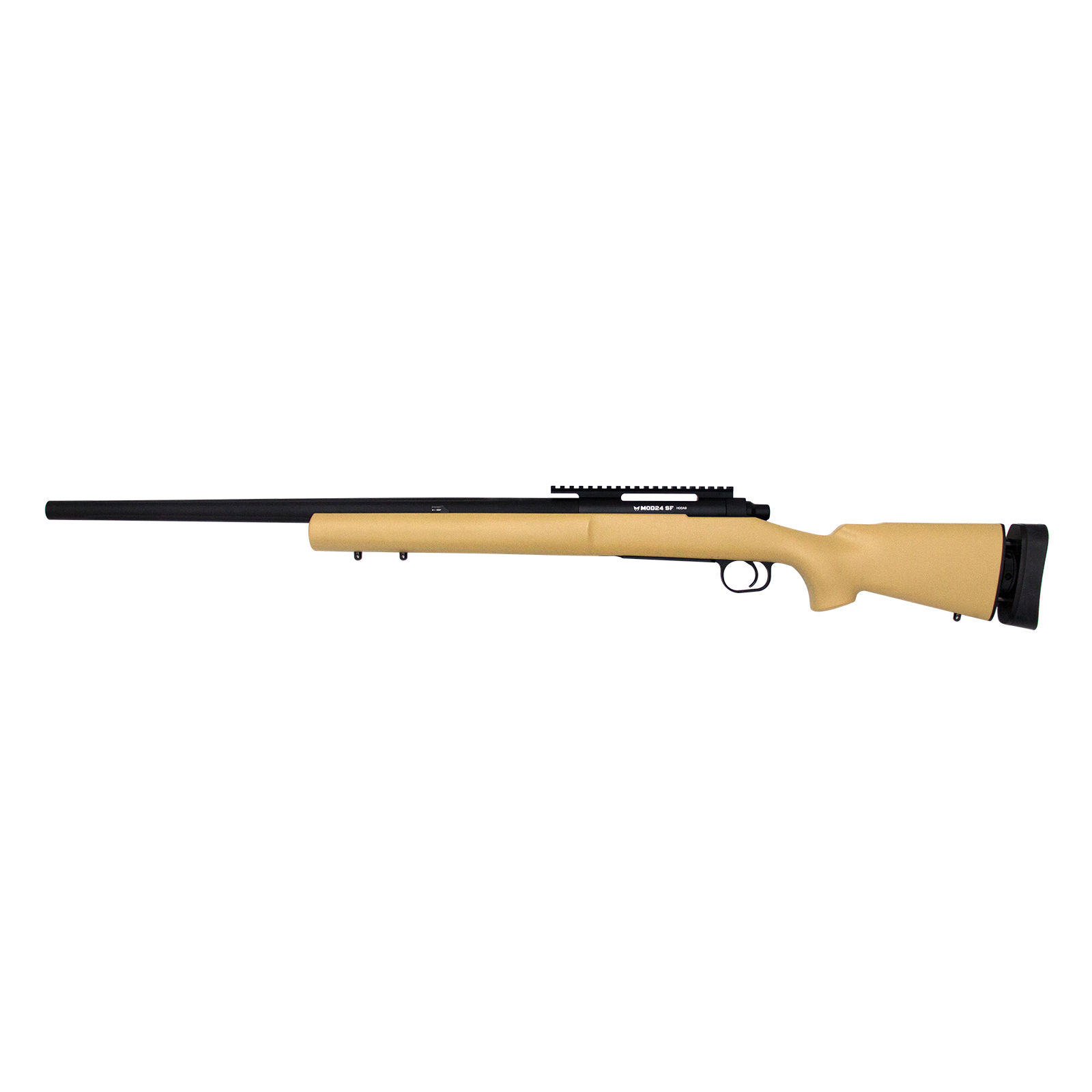 MOD24 SF 系統提供靈活性和高命中率,特製內管固定器使彈道精準。可調式板機無須拆卸即可調整扳機行程與力度,調整範圍更廣;加大板機框;可卸除式軍規皮卡汀尼鏡軌,加長加高適配各種狙擊鏡安裝;鋼製氣缸與強化金屬內部零件;LED 發光彈匣,可自行拆卸;可調式後托,另有2個槍背帶環和3個螺栓。槍身採不刺眼、低反光塗層,提升隱蔽性。每把 MOD24 SF 均經原廠氣密測試,確保最佳性能。