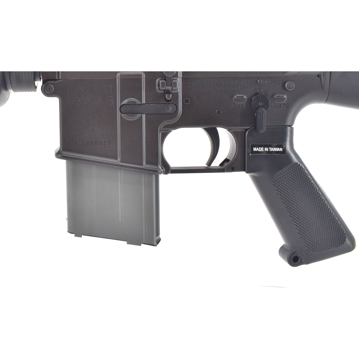 本款由 Cybergun 正式授權 Colt 商標製作,外觀與刻印皆為正版授權呈現。內部則導入 VFC 最新 V3 架構:新設計的鋼製無切氣擊錘組、改良的氣閥敲擊部件與新版覆進簧,以及改良下槍身結構,這些改良不僅讓氣閥敲擊更確實、零件壽命與嵌合度提升,也簡化維修保養流程;同時隨機搭配新版瓦斯彈匣,使整體性能與循環穩定度明顯提升。VFC 將 AR 系列的更新機構一次置入本款經典槍型,讓收藏價值與實戰可用性兼具:蒐藏者能享受高還原度的外觀,玩家經過簡單調校即可直接下場使用。