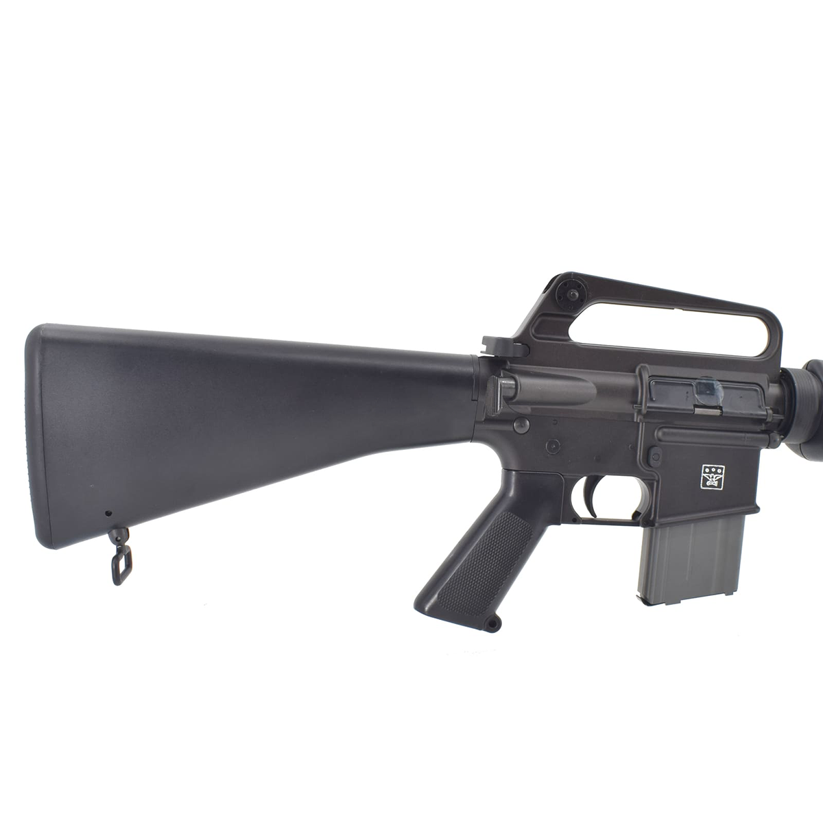 - 經典 M16 / XM16E1 外觀元素:三叉防火帽、三角準星座、三角護木、固定提把上機匣等