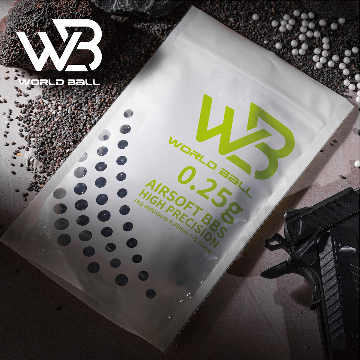- WB BB彈由優質礦物質材料製成,提供卓越的動力,確保您的射擊穩定且強大。