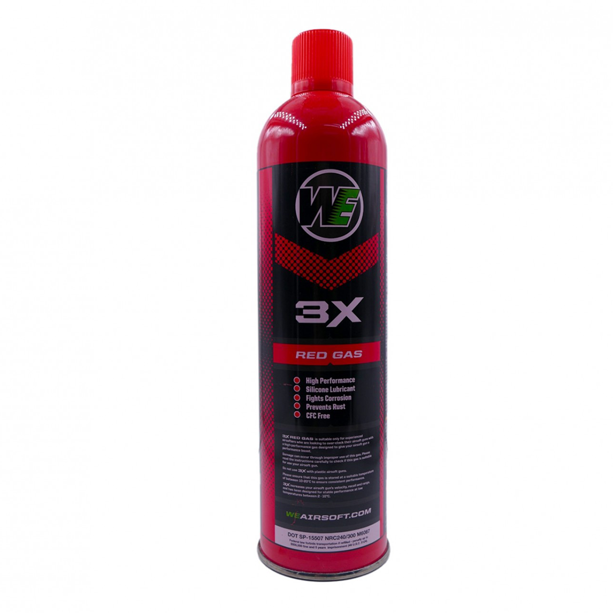氣體由 WE 研發製造,能在更寬廣的溫度範圍內穩定使用(最低可達 -20°C),不僅適合手槍,也能應用於卡賓槍與手榴彈等多種氣槍平台。內含的矽油混合物在射擊過程中能自動潤滑與保養零件,有效減少磨損並延長使用壽命,同時具備防腐蝕效果,維持槍枝穩定表現。