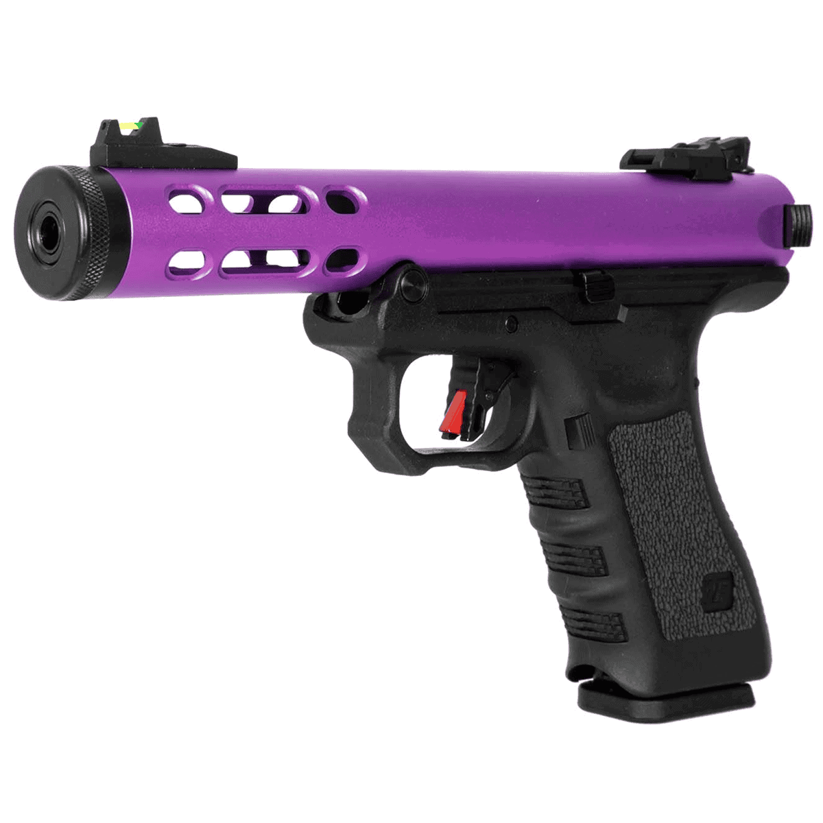 WE Galaxy 克拉克 Glock AAP01 是一款全新的全自動瓦斯後座力手槍,具備現代化的設計和高性能射擊體驗。全金屬滑套和槍管組件,搭配高強度塑膠握把,提供了耐用性和舒適的握感。此款手槍的外觀具有多種顏色選擇,包括黑色、藍色、金色、銀色和紫色。其獨特的設計還包括可拆卸的 M1913 皮卡汀尼導軌,支援安裝光學元件、配件,或安裝補償器與滅音器。